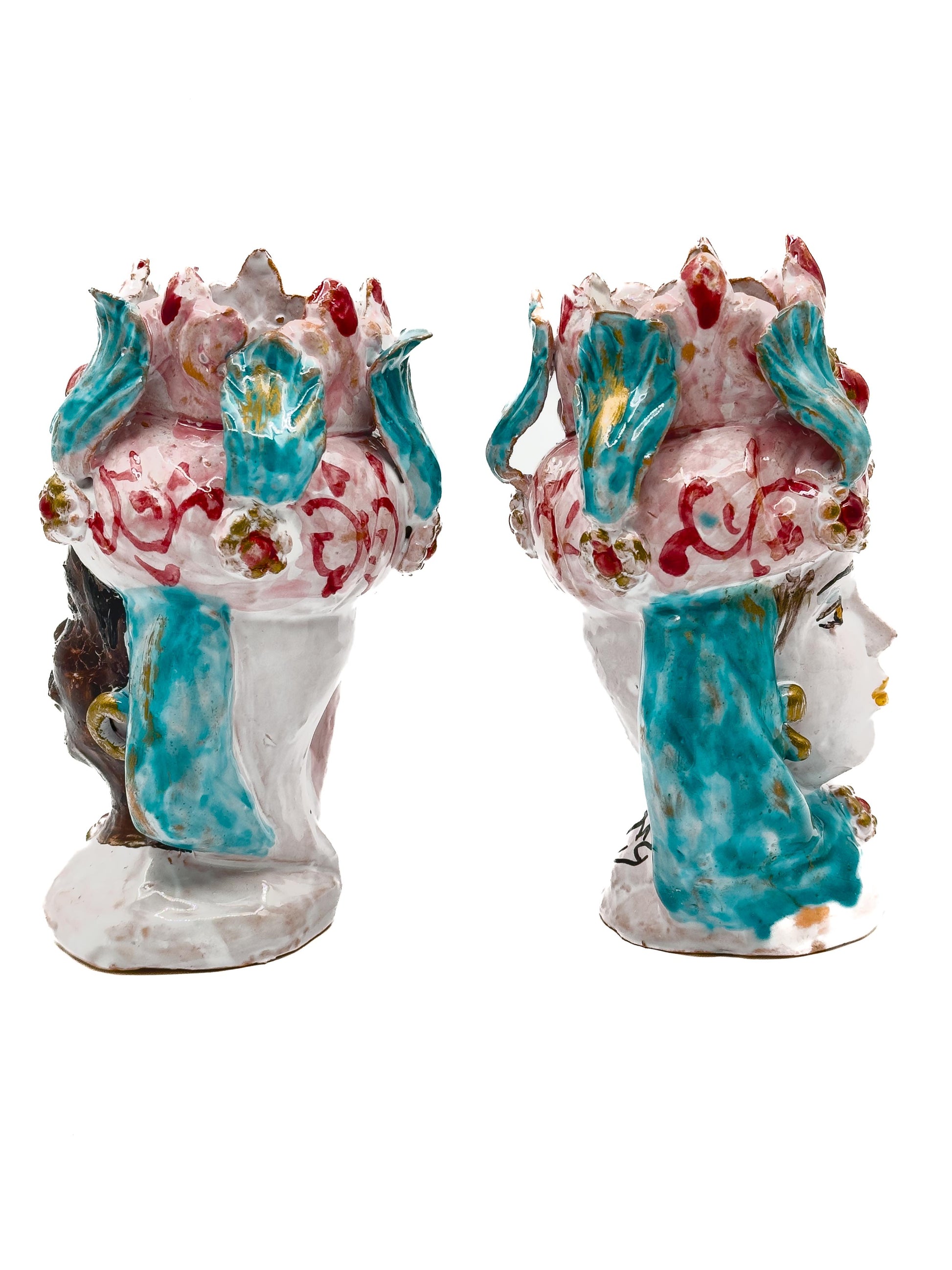Teste di Moro in Ceramica Rosa e Verde Acqua 15cm