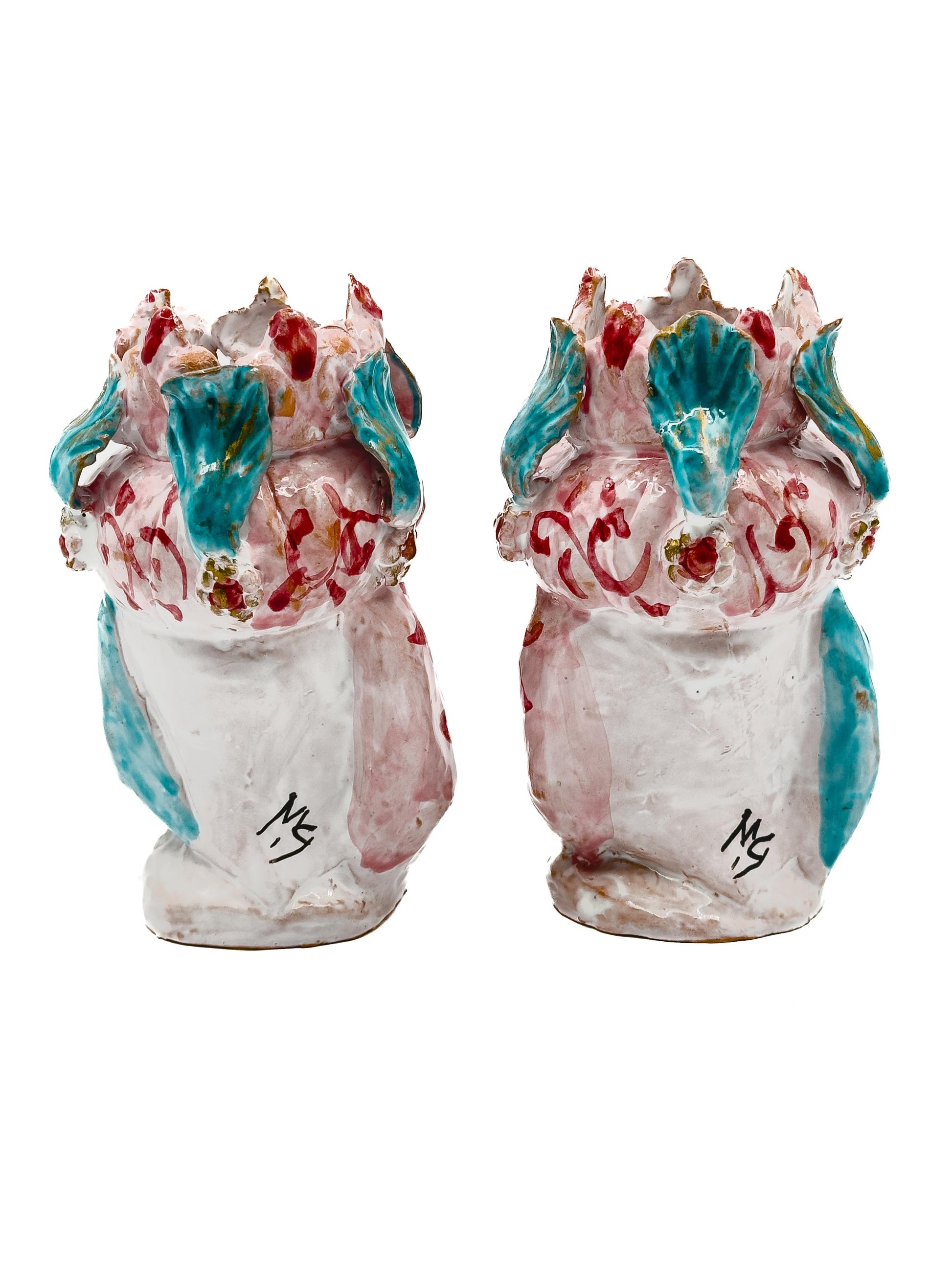 Queste deliziose Testine di Moro Siciliane fatte a mano sono un elemento essenziale per arricchire la tua casa con uno stile unico. Con un bellissimo colore avorio, rosa e verde acqua con dettagli dorati, queste testine portano la bellezza e l'eleganza della Sicilia direttamente nella tua casa. Con una altezza di 15 cm, sono perfette per aggiungere un tocco di tradizione e cultura alla tua decorazione.
